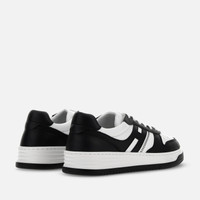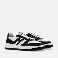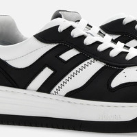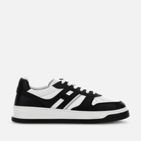- Men's Hogan H630 Sneakers - Made in Italy - Smooth and nappa leather upper - Side H - Memory foam insole 0.4 ins - Rubber outsole - Total height 1.5 ins - Maintenance and care cards included - Fabric dustbag included - Additional laces included New sneakers with retro vibes, the Hogan H630 combines lines belonging to the basketball world and classic brand style. The smooth and nappa leather upper features an extended H that envelopes the heel. The outsole is crafted in extra-light EVA, with the new embossed HGN86 logo on the side and shaded stripes that reinterpret the historic Rebel grooves. True must-have for the contemporary wardrobe, this dynamic style is completed by a memory foam insole that ensures softness and cushioning. MOD. HXM6300EU50R370001
