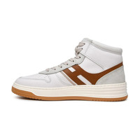 Step up your sneaker game with Hogan`s H630 sneakers in white leather. Featuring suede inserts, a printed logo on the tongue, and the iconic H on the side, these sneakers are both stylish and comfortable with a ry foam footbed and rubber sole. Made from 100% calf leather, these sneakers are a must-have for any fashion-forward man. Designer color: Beige Designer ID: HXM6300EU40OEA641X Material & Care 100% Calf