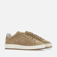 - Men's Hogan H672 Sneakers - Suede upper - Smooth leather detailing - Perforated side H - Soft outsole covered in leather 0.2 ins - Rubber outsole - Total height 1.4 ins - Maintenance and care cards included - Fabric dustbag included - Additional laces included Inspired by 80s tennis shoes, the Hogan H672 are defined by their refined yet laid-back vintage look. Soft and versatile, these sneakers are characterized by a perforated side H and an essential line outsole. Complemented by a soft insole, they come here in suede.