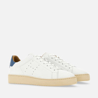 - Men's Hogan H672 Sneakers - Nappa leather upper - Smooth leather detailing - Perforated side H - Soft outsole covered in leather 0.2 ins - Rubber outsole - Total height 1.4 ins - Maintenance and care cards included - Fabric dustbag included - Additional laces included Inspired by 80s tennis shoes, the Hogan H672 are defined by their refined yet laid-back vintage look. Soft and versatile, these sneakers are characterized by a perforated side H and an essential line outsole. Complemented by a soft insole, they come here in nappa leather.