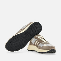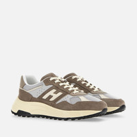 - Men's Hogan Hyperlight Sneakers - Made in Italy - Suede upper - Smooth leather inserts - Mesh detailing - Side H - Memory foam insole 0.3 ins - Rubber outsole - Total height 1.8 ins - Maintenance and care cards included - Fabric dustbag included - Additional laces included Characterized by smooth and dynamic forms, the Hogan Hyperlight sneakers combine the jogging shoe lines and urban features. The suede upper with side H, recalls iconic details of the brand. A dynamic style, with a memory foam insole and a lightweight outsole with spikes.
