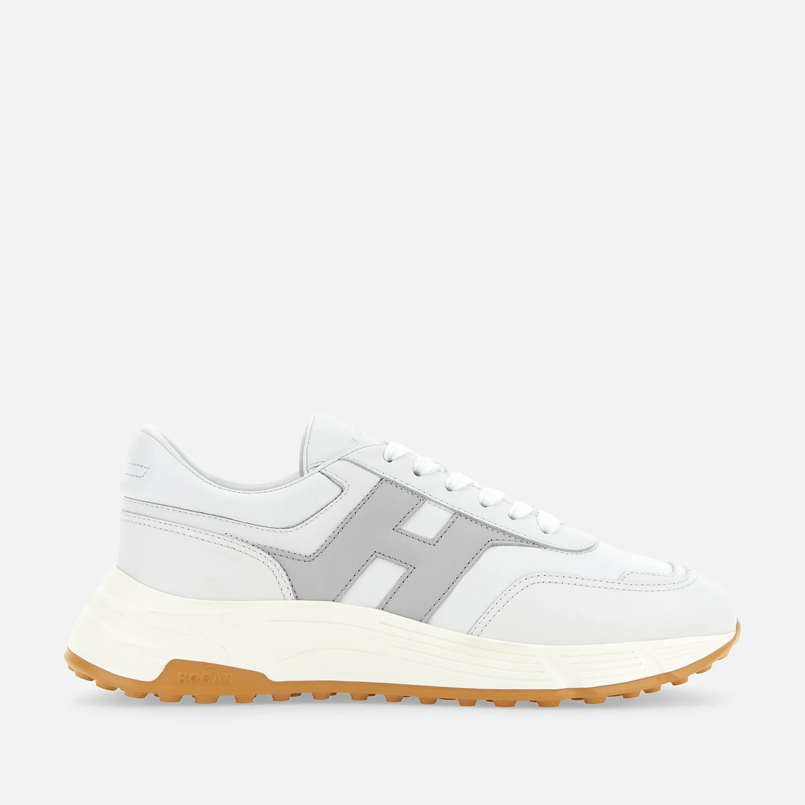 - Men's Hogan Hyperlight Sneakers - Made in Italy - Smooth leather upper - Slanted side H - Memory foam insole 0.3 ins - Rubber outsole - Total height 1.8 ins - Maintenance and care cards included - Fabric dustbag included - Additional laces included Characterized by smooth and dynamic forms, the Hogan Hyperlight sneakers combine the jogging shoe lines and urban features. The smooth leather upper with slanted H, recalls iconic details of the brand. A dynamic style, with a memory foam insole and a lightweight outsole with spikes.