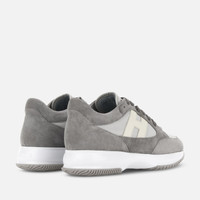 - Men's Hogan Interactive Sneakers - Made in Italy - Suede upper - Fabric inserts - Smooth leather side H - Memory foam insole 0.3 ins - Rubber outsole - Total height 2.2 ins - Maintenance and care cards included - Fabric dustbag included - Additional laces included Hogan Interactive is a timeless icon, since 1997 absolute interpreter of functional and contemporary luxury. Characterized by an elegant design and a lightweight outsole to guarantee a tall-and-slim look, these sneakers in suede and fabric feature a smooth leather side H. Perfect for a sporty chic look, they are complemented by a memory foam insole.