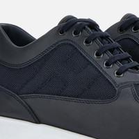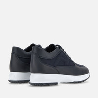 - Men's Hogan Interactive Sneakers - Made in Italy - Smooth leather upper - Woven fabric inserts - Exposed stitching - Embossed side H - Removable insole 0.5 ins - Rubber outsole - Total height 2.2 ins - Maintenance and care cards included - Fabric dustbag included - Additional laces included Hogan Interactive is a real timeless icon, characterized by an elegant design and a lightweight outsole to guarantee a tall-and-slim look. Since 1997 it gets renewed with each collection still representing an absolute functional and contemporary luxury icon. These sneakers in smooth leather with woven fabric inserts feature a padded side H. Perfect for an urban casual look.