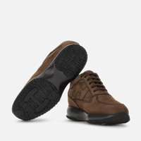 - Men's Hogan Interactive Sneakers - Made in Italy - Nubuck upper - Exposed stitching - Embossed side H - Removable insole rise 0.5 ins - Rubber outsole - Total height 2.2 ins - Maintenance and care cards included - Fabric dustbag included - Additional laces included Hogan Interactive is a real timeless icon, characterized by an elegant design and a lightweight outsole to guarantee a tall-and-slim look. Since 1997 it gets renewed with each collection still representing an absolute functional and contemporary luxury icon. These sneakers in nubuck feature a padded side H. Perfect for an urban casual look.