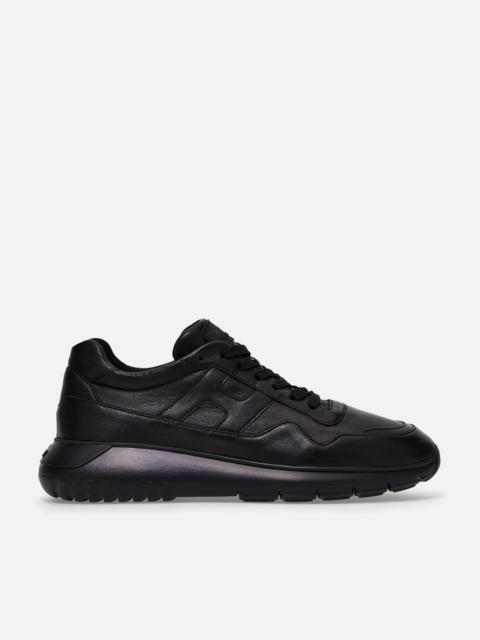 - Men's Hogan Interactive³ Sneakers - Nubuck upper - Side H - Rubberized inserts - Smooth leather detailing - Memory foam insole 0.3 ins - Rubber outsole - Total height 2.1 ins - Maintenance and care cards included - Fabric dustbag included - Additional laces included Stylish and technological evolution of an icon from the world of Hogan, Interactive³ is now an emblem itself. The ergonomic and lightweight outsole, together with the upper featuring a dynamic and balanced look, make it a real urban passe-partout. These bold sneakers are crafted in nubuck with side H. The memory foam insole guarantees a cushioned fit.