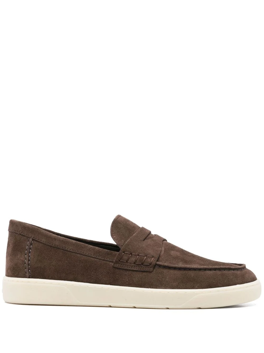 suede loafers Highlights - Chocolate brown - Rubber sole - Penny slot - Moc stitching Imported Composition Lining: Calf Leather 100% Outer: Calf Suede 100% Sole: Rubber 100%
