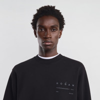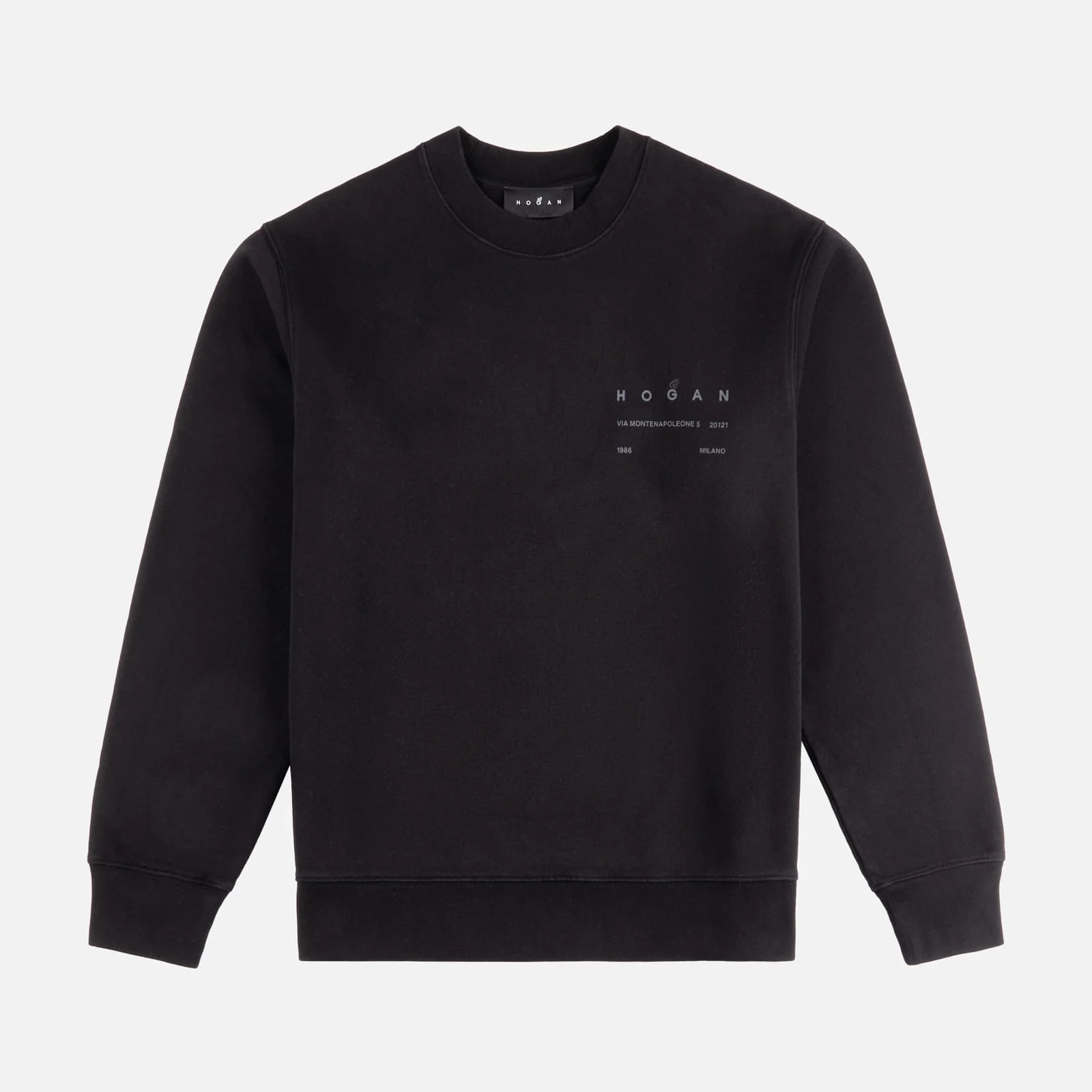 - Men's sweatshirt - Fitting: comfort - Item composition: 100% cotton, knit hems 100% cotton - Maintenance and care cards included Round-neck sweater in cotton fleece. A garment with a relaxed and casual mood, featuring the brand's address printed on the front.