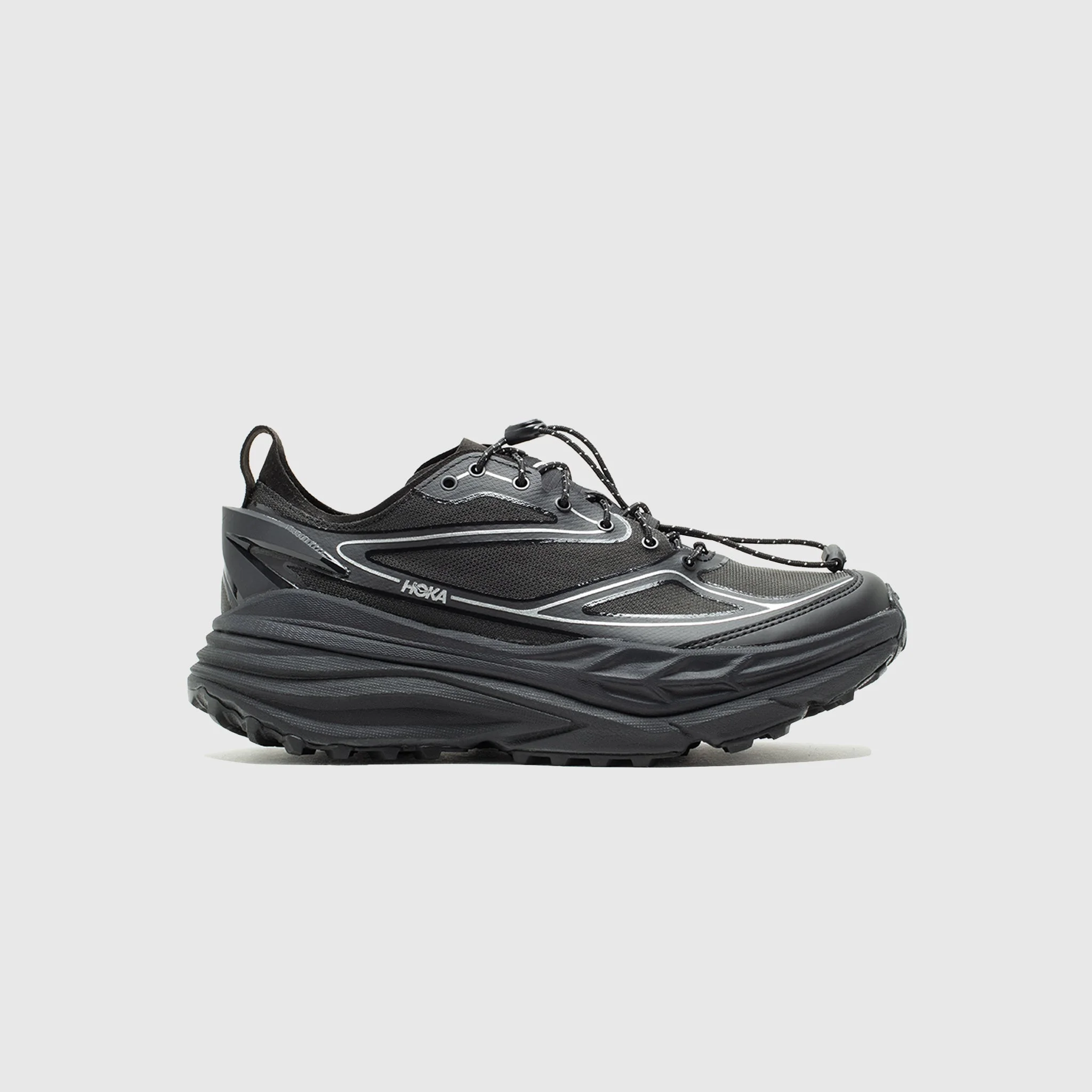 - 1168931-BKSV - Black/Silver - The HOKA Stinson 7 delivers max cushioning and all-terrain versatility in one ultra-stable package. - Translucent mono mesh upper - Internal cage overlay - Branding on the lateral side panel - 3D-molded TPU heel clip - Adjustable speed lace system - Active foot frame - H-Frame stability technology - Full-length CMEVA midsole - Dubrassion rubber outsole