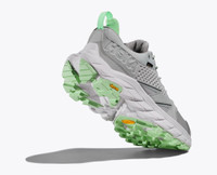 A day hiker designed with responsible manufacturing in mind, the Anacapa Low GTX is a low-profile take on the Anacapa Mid GTX. Engineered from lightweight leather certified by the Leather Working Group, the versatile silhouette employs recycled polyester in the collar, mesh and laces. This innovative style applies signature HOKA extended-heel geometry designed for a smooth ride on the trails. Item No. 1136670 Best for: Hiking Features: Leather Working Group Gold-rated waterproof nubuck leather 100% Recycled polyester laces (excluding aglet) GORE-TEX bootie construction with 71% recycled polyester face fabric PFC-Free water repellency treatment Quick lace hook Gusseted tongue Molded PU sockliner derived from 50% soybean oil Compression molded EVA foam midsole Late stage MetaRocker™ Hubble® heel geometry Vibram® Megagrip rubber with 5mm lugs 100% recycled polyester quarter mesh, collar and lining mesh 80% recycled polyester strobel board RN 88276 THE DETAILS Weight 14.00 oz Heel-To-Toe Drop 6.00 mm Stability The Anacapa Low GTX features a symmetrical bed of cushion without additional prescriptive technologies. Designed to provide the support you want and nothing you don't. Cushion The Anacapa Low GTX is designed to provide protective cushion while maintaining a responsive toe-off for when you want to go faster.