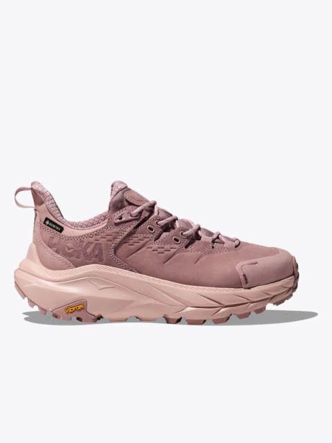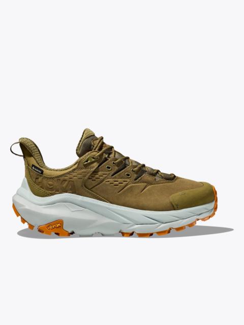 With a remarkable weight-to-cushion ratio, the Kaha 2 Low GTX delivers peak performance with peak plushness. Updated with a HUBBLE® heel with SwallowTail™ geometry, this durable hiker features Vibram® Megagrip with Traction Lug for increased ground contact. Consciously crafted, this trailblazing silhouette employs GORE-TEX footwear fabric with recycled textile. Item No. 1130530 Best for: Hiking Features: Leather Working Group Gold-rated waterproof nubuck leather GORE-TEX footwear fabric with 71% recycled polyester face fabric Dual-density CMEVA midsole with HUBBLE® heel and SwallowTail™ Late stage MetaRocker™ with integrated flex grooves Vibram® Megagrip rubber with Traction Lug 5mm lugs Abrasion resistant toecap and heel Waterproof membrane bootie construction Anatomical Achilles construction with heel pull tab Topically applied PFC-free water repellency treatment Rubberized EVA midsole Molded PU sockliner with 50% soybean oil 51% Recycled polyester quarter mesh and tongue mesh 90% Recycled polyester exterior collar mesh 80% Recycled polyester lining mesh 80% Recycled polyester strobel board RN 88276 WHAT'S NEW Sustainably-minded materials. Enhanced cushion and durability. THE DETAILS Weight 16.80 oz Heel-To-Toe Drop 6.00 mm Stability The Kaha 2 Low GTX features a symmetrical bed of cushion without additional prescriptive technologies. Designed to provide the support you want and nothing you don't. Cushion The Kaha 2 Low GTX features a higher bed of soft cushion, designed to provide a forgiving impact and ride.