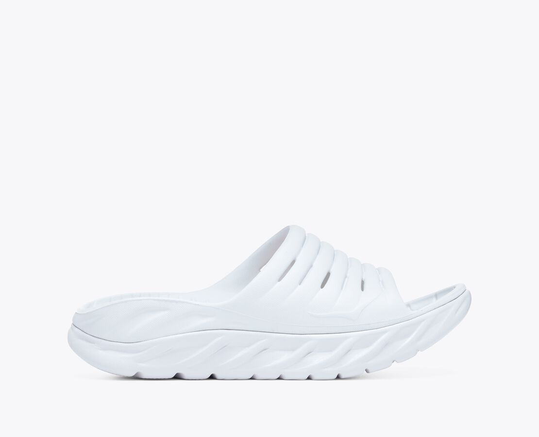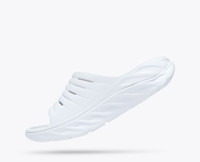 You’ve just finished a long run or grueling race and simply put, your feet need some TLC. Enter the Ora Recovery Slide. We put a HOKA oversized midsole and our Meta-Rocker geometry into a slide design and love the result. Comfort and support when and where you need them. Item No. 1134527 Best for: Recovery Lifestyle Features: Vegan Soft EVA upper Early stage Meta-Rocker Dual-layer construction EVA midsole THE DETAILS Weight 6.60 oz Heel-To-Toe Drop 6.00 mm Stability The Ora Recovery Slide features a symmetrical bed of cushion without additional prescriptive technologies. Designed to provide the support you want and nothing you don't. Cushion The Ora Recovery Slide features a higher bed of soft cushion, designed to provide a forgiving impact and ride.