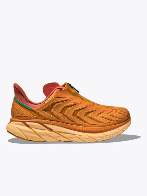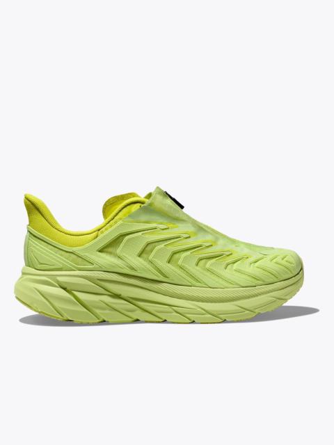 A futuristic riff on the classic Clifton, this souped-up spinoff pairs the Clifton 8’s cushy bottom unit with an edgy upper that enlists a quick-lace system and Aquaguard® Zip. Delivering the same cushioned ride experience as the original icon, this street-inspired style makes a statement with raised detailing over ripstop mesh. Item No. 1127924 Best for: Lifestyle Features: Ripstop mesh Quick-lace system Aquaguard ® Zip EVA foam midsole High-abrasion rubber outsole RN 88276 THE DETAILS Weight 8.80 oz Heel-To-Toe Drop 5.00 mm Stability The Project Clifton features a symmetrical bed of cushion without additional prescriptive technologies. Designed to provide the support you want and nothing you don't. Cushion The Project Clifton features a higher bed of soft cushion, designed to provide a forgiving impact and ride.