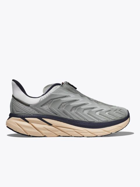 A futuristic riff on the classic Clifton, this souped-up spinoff pairs the Clifton 8’s cushy bottom unit with an edgy upper that enlists a quick-lace system and Aquaguard® Zip. Delivering the same cushioned ride experience as the original icon, this street-inspired style makes a statement with raised detailing over ripstop mesh. Item No. 1127924 Best for: Lifestyle Features: Ripstop mesh Quick-lace system Aquaguard ® Zip EVA foam midsole High-abrasion rubber outsole RN 88276 THE DETAILS Weight 8.80 oz Heel-To-Toe Drop 5.00 mm Stability The Project Clifton features a symmetrical bed of cushion without additional prescriptive technologies. Designed to provide the support you want and nothing you don't. Cushion The Project Clifton features a higher bed of soft cushion, designed to provide a forgiving impact and ride.