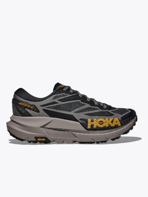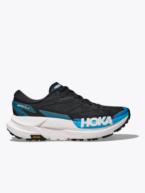 Calling all trail racing fiends, gravel grinders, and 100-milers. There's a new trail titan in town. Built for long-haul efforts, the Mafate X delivers supreme plushness with a dual-density, premium foam chassis, PEBA top layer, and a pop of propulsion thanks to our forked carbon fiber plate. We've implemented an ultralight woven upper that allows for easy drainage and Vibram Megagrip outsole with pod-like cutouts to ensure a smooth ride over variable terrain. Patent-pending dynamic vamp. PEBA core. Super critically foamed EVA carrier. Vibram Megagrip. SCF TPEE sockliner. Woven textile. Gusseted tongue. Protective toe cap. Molded TPU heel counter. Reflective details. Smooth Meta Rocker. Rearfoot-focused Active Foot Frame. Carbon fiber plate. 3.5mm lugs. Zonal rubber.