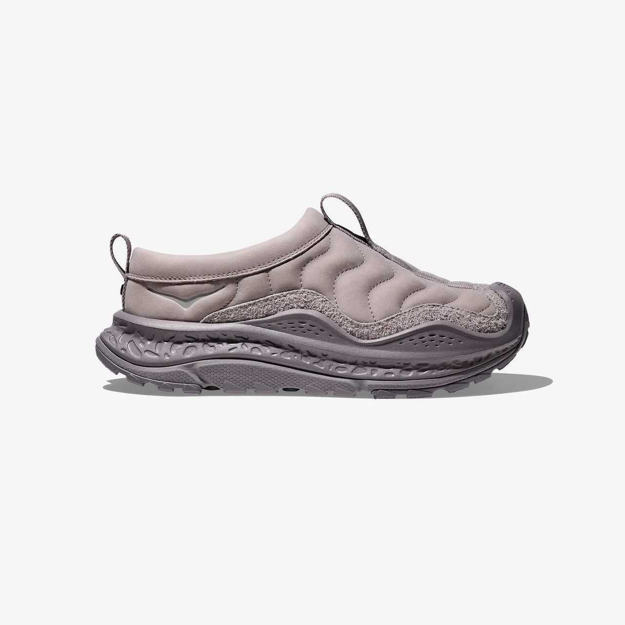 Designed with recovery after an adventure at its core, the Hoka Ora Primo TP combines a slip-on style with a soft knit collar and a padded upper for maximized comfort, while a protective toe bumper and durable rubber outsole made with 30% recycled materials allow you to head back into the wild with ease. - Hoka Ora Primo TP - Insulated puff upper - Knit collar - Zig-zag stitch detail - Protective toe bumper - 30% recycled rubber outsole - Vegan Article no: 1165731MTNS Gender: Unisex Color: MOONSTONE/ASTRAL