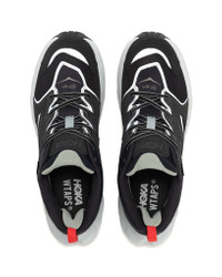 The original Anacapa Low returns with a collaborative effort from WTAPS. Utilising a unique colourway and construction, with reflective underlays and the typical WTAPS typographic treatment. A day hiker designed with responsible manufacturing in mind, the Anacapa Low GTX is a low-profile take on the Anacapa Mid GTX. Engineered from lightweight leather, the versatile silhouette employs recycled polyester in the collar, mesh and laces and a GORE-TEX bootie construction for wet weather protection. This innovative style applies signature HOKA extended-heel geometry designed for a smooth ride on the trails. DETAILS - 1155397-JTB - Designed in collaboration with WTAPS - Nubuck leather uppers - Waterproof GORE-TEX® upper lining - Gusseted tongue construction - Mesh sock liner - Reinforced, reflective upper overlays - Molded PU sockliner derived from 50% soybean oil - Compression molded EVA foam midsole - Late stage MetaRocker™ design - Hubble® heel geometry - Vibram® Megagrip outsole - 100% Recycled polyester laces