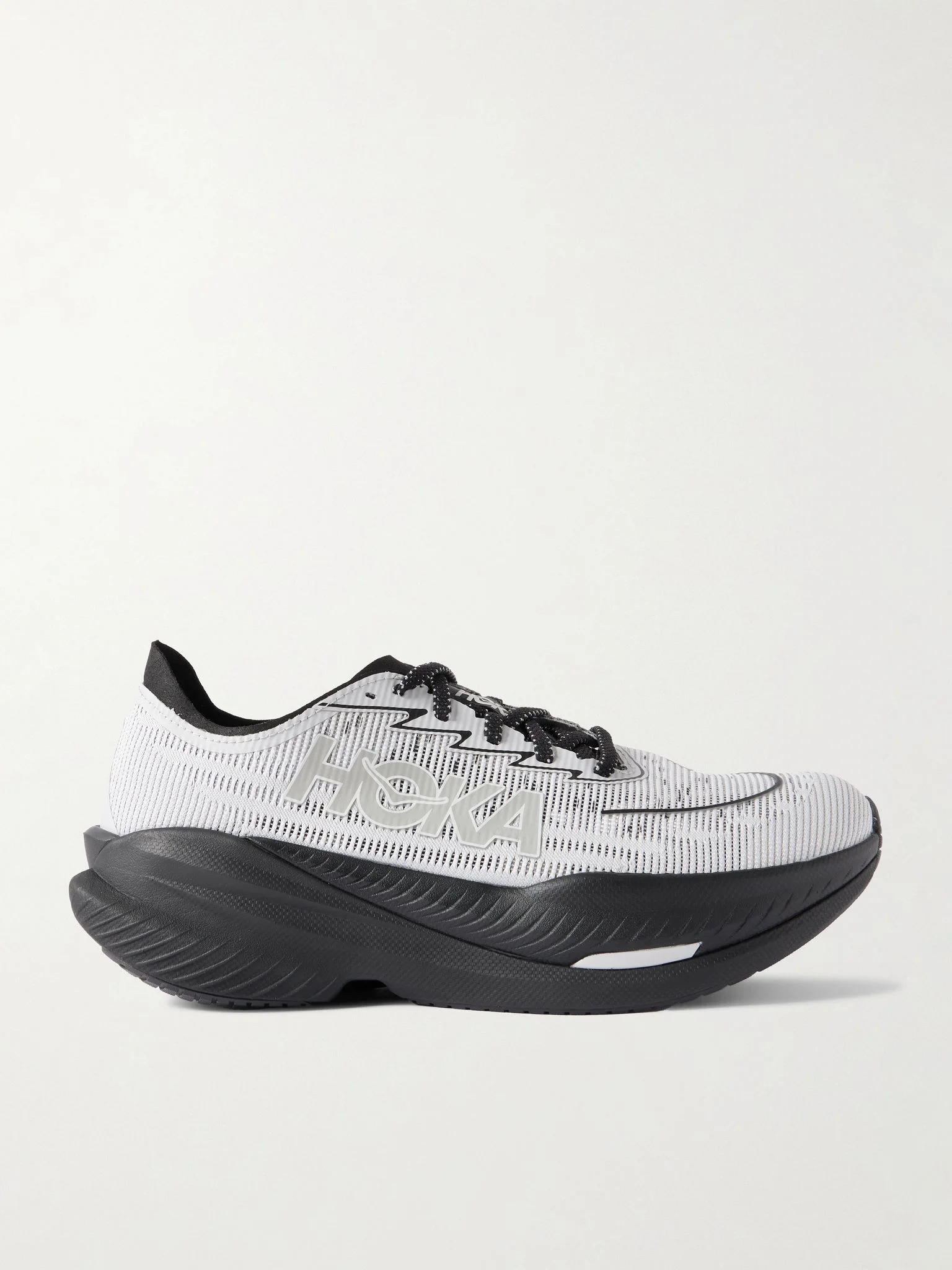 Whatever the distance, Hoka's running sneakers will take you all the way. - This 'Mach X 2' pair is made from breathable mesh with rubber overlays - PEBA-trimmed midsoles for enhanced durability - Aggressive rocker propels you forward - Full-length Pebax® plate that's great for speedwork Size & Fit Fits true to size, please refer to Hoka One One size guide below: - US 6.5 = UK 6/ EU 39 - US 7 = UK 6.5/ EU 40 - US 7.5 = UK 7/ EU 40.5 - US 8 = UK 7.5/ EU 41 - US 8.5 = UK 8/ EU 42 - US 9 = UK 8.5/ EU 42.5 - US 9.5 = UK 9/ EU 43 - US 10 = UK 9.5/ EU 44 - US 10.5 = UK 10/ EU 44.5 - US 11 = UK 10.5/ EU 45 - US 11.5 = UK 11/ EU 46 - US 12 = UK 11.5/ EU 46.5 - US 12.5 = UK 12/ EU 47 - US 13 = UK 12.5/ EU 48 Details & Care - Light-grey and black mesh, white, grey and black rubber - Lace-up - Designer colour: Black/ Stardust - Hoka follows its own size guide, therefore the size stated on the box will differ from the one provided in our size chart. To receive your correct fit, please refer to Size & Fit notes