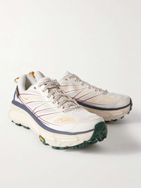 Hoka's running gear adapts to a wide range of terrains. - These 'Mafate Speed 2' sneakers are made from lightweight anti-debris rubber and mesh using the brand's signature 'No Sew SpeedFrame' construction - Early-stage Meta-Rocker smooths out transitions - 5mm Vibram Megagrip tread soles offer traction on uneven surfaces Size & Fit - US 6.5 = UK 6/ EU 39 - US 7 = UK 6.5/ EU 40 - US 7.5 = UK 7/ EU 40.5 - US 8 = UK 7.5/ EU 41 - US 8.5 = UK 8/ EU 42 - US 9 = UK 8.5/ EU 42.5 - US 9.5 = UK 9/ EU 43 - US 10 = UK 9.5/ EU 44 - US 10.5 = UK 10/ EU 44.5 - US 11 = UK 10.5/ EU 45 - US 11.5 = UK 11/ EU 46 - US 12 = UK 11.5/ EU 46.5 - US 12.5 = UK 12/ EU 47 - US 13 = UK 12.5/ EU 48 - Packaging reflects both men’s and women’s sizing Details & Care - Beige mesh, multicoloured rubber - Lace-up - Designer colour: Alabaster/ Oat Milk - Style number: 1126851 - Hoka follows its own size guide, therefore the size stated on the box will differ from the one provided in our size chart. To receive your correct fit, please refer to Size & Fit notes