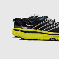 - 1141572-BHK - Black/Hoka Citrus - Hoka's Mafate Three2 combines the extra cushioned sole of the Mafate Speed 2 and the striking upper design from the Mafate 3 - Mesh upper - Hot melt overlays - Gusseted tongue with quick-lace system - Branding on the side heel - Lightweight no-sew SpeedFrame construction - Lightweight external TPU heel counter - Compression-molded EVA midsole - Vibram® Megagrip outsole