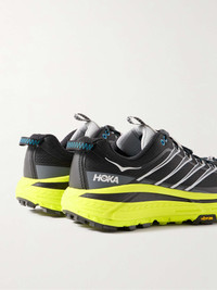 Hoka's innovative footwear is built to take on the harshest terrains. - These 'Mafate Three2' sneakers are constructed from breathable mesh with rubberised overlays - Quick-lacing system offers a secure, comfortable fit - Vibram Megagrip soles offer ample traction and stability Size & Fit - US 6.5 = UK 6/ EU 39 - US 7 = UK 6.5/ EU 40 - US 7.5 = UK 7/ EU 40.5 - US 8 = UK 7.5/ EU 41 - US 8.5 = UK 8/ EU 42 - US 9 = UK 8.5/ EU 42.5 - US 9.5 = UK 9/ EU 43 - US 10 = UK 9.5/ EU 44 - US 10.5 = UK 10/ EU 44.5 - US 11 = UK 10.5/ EU 45 - US 11.5 = UK 11/ EU 46 - US 12 = UK 11.5/ EU 46.5 - US 12.5 = UK 12/ EU 47 - US 13 = UK 12.5/ EU 48 - Packaging reflects both men’s and women’s sizing Details & Care - Black and light-grey mesh, multicoloured rubber - Lace-up - Designer colour: Black/ Hoka Citrus - Style number: 1141572 - Hoka follows its own size guide, therefore the size stated on the box will differ from the one provided in our size chart. To receive your correct fit, please refer to Size & Fit notes