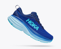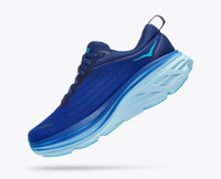One of the hardest working shoes in the HOKA lineup, the Bondi takes a bold step forward this season reworked with softer, lighter foams and a brand-new extended heel geometry. Taking on a billowed effect, the rear crash pad affords an incredibly soft and balanced ride from heel strike to forefoot transaction. Item No. 1123202 Best for: Everyday Run Walking Comfort Features: Engineered mesh construction Partially gusseted tongue 40% Recycled polyester eyestay lining Heel pull tab Ortholite® hybrid sockliner Lightweight, resilient foam Zonal rubber placement for weight savings Durabrasion rubber outsole Vegan Upper mesh with 50% recycled polyester 87% Recycled polyester strobel board 100% recycled polyester sockliner top cloth RN 88276 WHAT'S NEW Amplifying core performance features, the Bondi 8 is upgraded with an extended heel, brand-new foam, and pillowed tongue. THE DETAILS Weight 10.80 oz Heel-To-Toe Drop 4.00 mm Stability The Bondi 8 features a symmetrical bed of cushion without additional prescriptive technologies. Designed to provide the support you want and nothing you don't. Cushion The Bondi 8 features a higher bed of soft cushion, designed to provide a forgiving impact and ride.