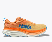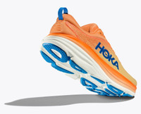 One of the hardest working shoes in the HOKA lineup, the Bondi takes a bold step forward this season reworked with softer, lighter foams and a brand-new extended heel geometry. Taking on a billowed effect, the rear crash pad affords an incredibly soft and balanced ride from heel strike to forefoot transaction. Item No. 1123202 Best for: Everyday Run Walking Comfort Features: Engineered mesh construction Partially gusseted tongue 40% Recycled polyester eyestay lining Heel pull tab Ortholite® hybrid sockliner Lightweight, resilient foam Zonal rubber placement for weight savings Durabrasion rubber outsole Vegan Upper mesh with 50% recycled polyester 87% Recycled polyester strobel board 100% recycled polyester sockliner top cloth RN 88276 WHAT'S NEW Amplifying core performance features, the Bondi 8 is upgraded with an extended heel, brand-new foam, and pillowed tongue. THE DETAILS Weight 10.80 oz Heel-To-Toe Drop 4.00 mm Stability The Bondi 8 features a symmetrical bed of cushion without additional prescriptive technologies. Designed to provide the support you want and nothing you don't. Cushion The Bondi 8 features a higher bed of soft cushion, designed to provide a forgiving impact and ride.