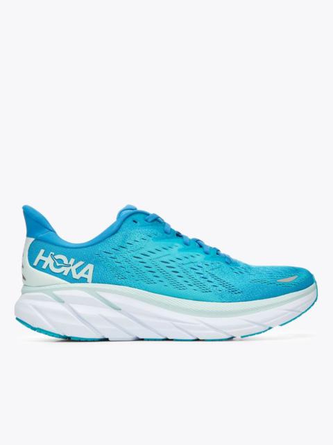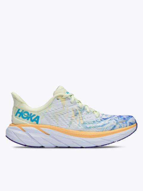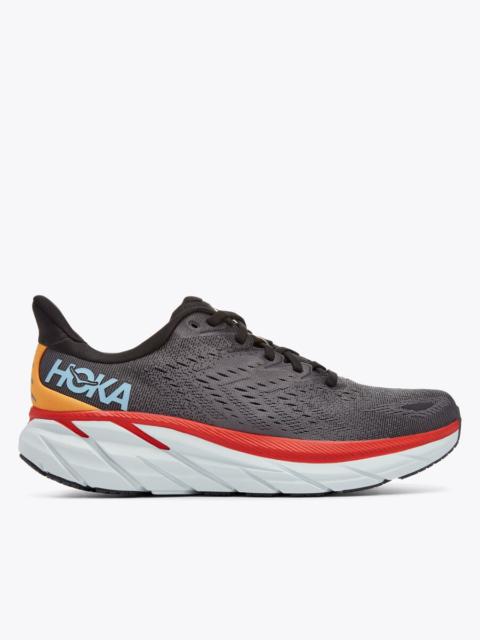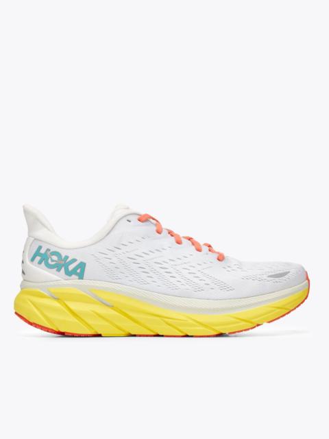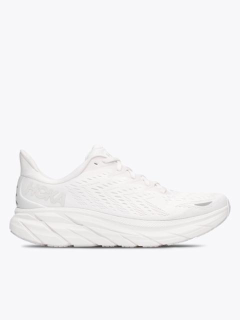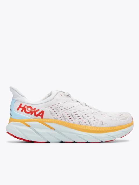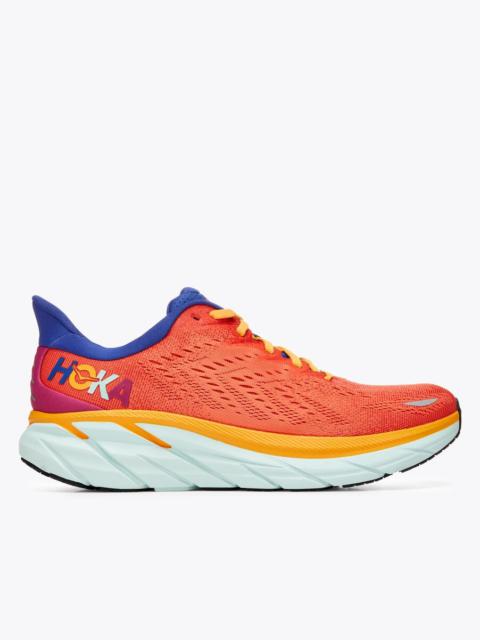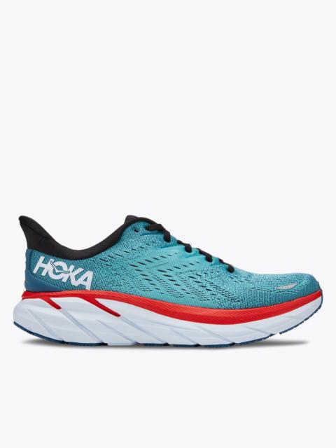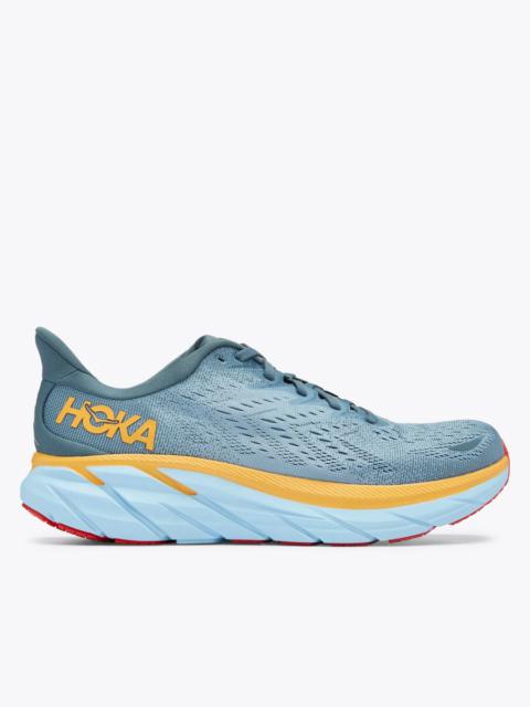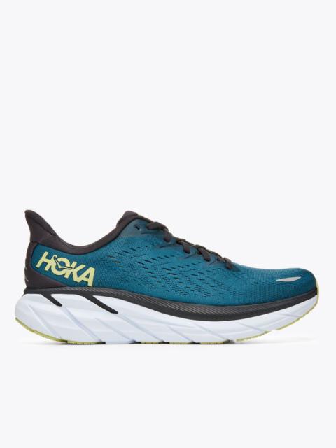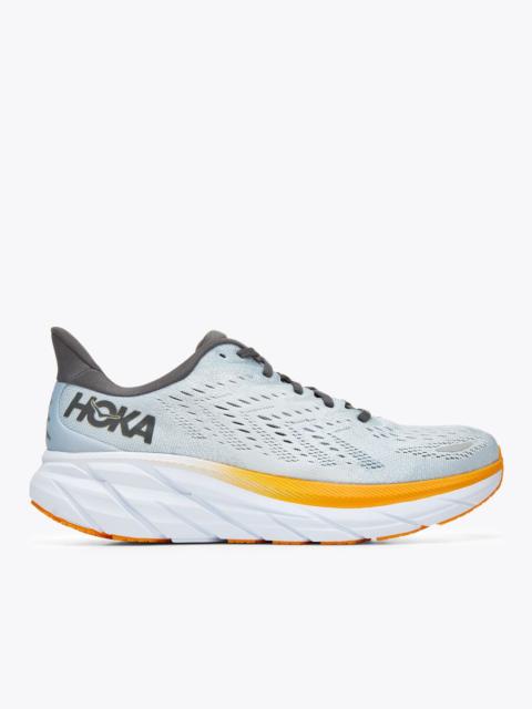 The latest in the award-winning Clifton franchise, the Clifton 8 continues to deliver the perfect combination of soft and light. Crafted with a lighter, more responsive midsole and the same ride characteristics, the Clifton 8 features a streamlined silhouette and updated upper made from engineered mesh. Item No. 1119393 Best for: Everyday Run Walking Features: Breathable mesh upper Early stage Meta-Rocker Extended pull tab Flat-waisted geometry High-abrasion rubber Gusseted tongue EVA foam RN 88276 WHAT'S NEW We kept what you love and updated what you didn’t. THE DETAILS Weight 8.90 oz Heel-To-Toe Drop 5.00 mm Volume 655.00 cm 3 Spring Measurement 34x22 mm Stability The Clifton 8 features a symmetrical bed of cushion without additional prescriptive technologies. Designed to provide the support you want and nothing you don't. Cushion The Clifton 8 is designed to provide protective cushion while maintaining a responsive toe-off for when you want to go faster.