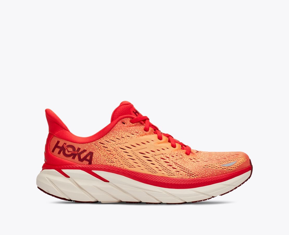 The latest in the award-winning Clifton franchise, the Clifton 8 continues to deliver the perfect combination of soft and light. Crafted with a lighter, more responsive midsole and the same ride characteristics, the Clifton 8 features a streamlined silhouette and updated upper made from engineered mesh. Item No. 1119393 Best for: Everyday Run Walking Features: Breathable mesh upper Early stage Meta-Rocker Extended pull tab Flat-waisted geometry High-abrasion rubber Gusseted tongue EVA foam RN 88276 WHAT'S NEW We kept what you love and updated what you didn’t. THE DETAILS Weight 8.90 oz Heel-To-Toe Drop 5.00 mm Volume 655.00 cm 3 Spring Measurement 34x22 mm Stability The Clifton 8 features a symmetrical bed of cushion without additional prescriptive technologies. Designed to provide the support you want and nothing you don't. Cushion The Clifton 8 is designed to provide protective cushion while maintaining a responsive toe-off for when you want to go faster.