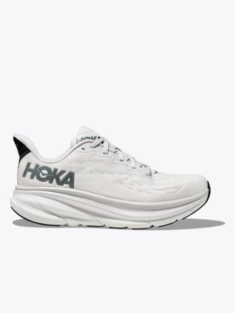 The ninth iteration of our award-winning Clifton franchise has launched, lighter and more cushioned than ever before. Eliminating weight while adding 3mm in stack height, the new Clifton 9 delivers a revitalized underfoot experience with a responsive new foam and improved outsole design. Removing overlays and hotmelts, the stripped back upper has been consciously crafted with a plusher heel, reflective heel panel, and streamlined tongue with single side medial gusset. Item No. 1127895 Best for: Everyday Run Walking Features: Breathable engineered knit upper Gusseted tongue Laces with 70% recycled nylon and 30% recycled polyester (excluding aglet) Compression molded EVA foam midsole Early stage MetaRocker™ Inherently stable geometry Durabrasion rubber outsole Vegan 35% Recycled polyester upper mesh 60% Recycled polyester collar and tongue lining 87% Recycled polyester strobel board 100% recycled polyester sockliner top cloth RN 88276 WHAT'S NEW More stack height, less weight (4 grams, to be exact). THE DETAILS Weight 8.70 oz Heel-To-Toe Drop 5.00 mm Stability The Clifton 9 features a symmetrical bed of cushion without additional prescriptive technologies. Designed to provide the support you want and nothing you don't. Cushion The Clifton 9 is designed to provide protective cushion while maintaining a responsive toe-off for when you want to go faster.