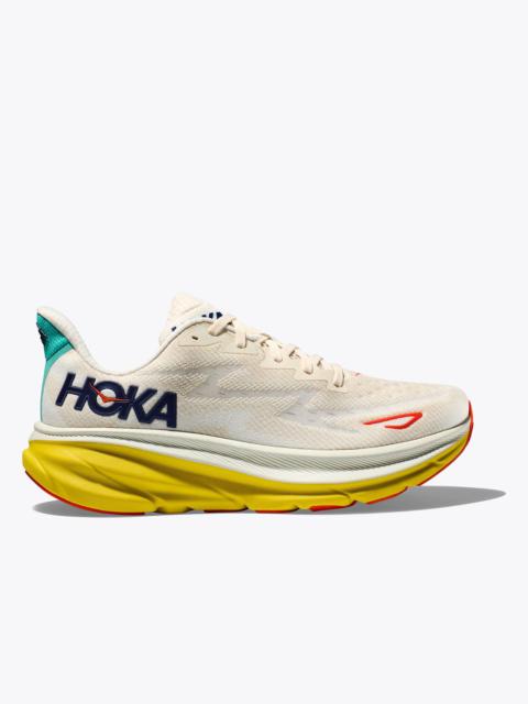 The ninth iteration of our award-winning Clifton franchise has launched, lighter and more cushioned than ever before. Eliminating weight while adding 3mm in stack height, the new Clifton 9 delivers a revitalized underfoot experience with a responsive new foam and improved outsole design. Removing overlays and hotmelts, the stripped back upper has been consciously crafted with a plusher heel, reflective heel panel, and streamlined tongue with single side medial gusset. Item No. 1127895 Best for: Everyday Run Walking Features: Breathable engineered knit upper Gusseted tongue Compression molded EVA foam midsole Early stage Meta-Rocker Durabrasion rubber outsole Inherently stable geometry Recycled content mesh Recycled polyester laces Vegan RN 88276 WHAT'S NEW More stack height, less weight (4 grams, to be exact). THE DETAILS Weight 8.70 oz Heel-To-Toe Drop 5.00 mm Stability The Clifton 9 features a symmetrical bed of cushion without additional prescriptive technologies. Designed to provide the support you want and nothing you don't. Cushion The Clifton 9 features a higher bed of soft cushion, designed to provide a forgiving impact and ride.