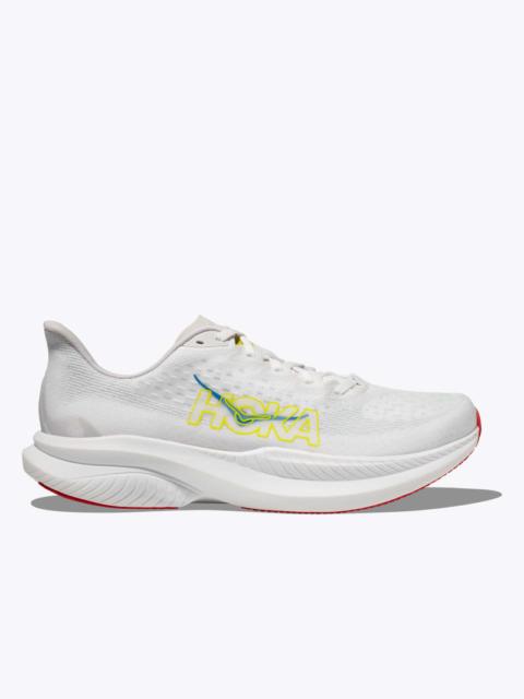 Behold our lightest, most responsive Mach to date. This lively trainer has been fine-tuned for extra energy return with a super critical foam midsole and updated for enhanced durability with strategic rubber coverage in the outsole. Implementing speed focused design details throughout, we’ve enlisted a new creel jacquard upper with zonal breathability and an internal gusset to deliver the foot-hugging comfort required to set your next PR. Item No. 1147790 Best for: Everyday Run Race Features: Creel jacquard upper Streamlined collar foam package Dual internal gusset Super critical foam midsole Strategic rubber outsole coverage Anatomical tongue RN 88276 WHAT'S NEW You’ll find a super critical foam midsole, along with a creel jacquard upper and refinements to the collar and tongue. THE DETAILS Weight 8.20 oz Heel-To-Toe Drop 5.00 mm Stability The Mach 6 features a symmetrical bed of cushion without additional prescriptive technologies. Designed to provide the support you want and nothing you don't. Cushion The Mach 6 features a low-profile cushion bed that keeps your foot closer to the ground, and utilizes a firmer material designed to provide an efficient push-off.