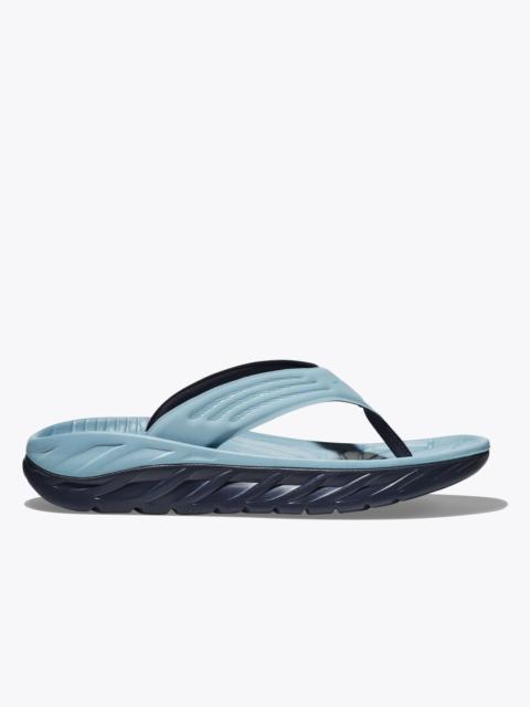 You just gave it all in that race and now your feet need some care, pronto. Enter the Ora Recovery Flip. We put a HOKA oversized midsole and Meta-Rocker geometry into a flip flop and improved the toe straps with a more anatomically friendly fit. It hugs the foot and provides sleek comfort and support. Your tired feet just got rescued. You’re welcome. Item No. 1099675 Best for: Recovery Comfort Features: Soft top layer EVA provides immediate step-in comfort Jersey textile strap provides comfort and wicks moisture Updated toe post for improved fit and comfort Early stage MetaRocker™ offers a smooth ride Dual-layer construction incorporates a soft top layer and a resilient midsole/outsole for durability and stability Strategic groove placement provides optimal comfort and traction RN 88276 THE DETAILS Weight 5.80 oz Heel-To-Toe Drop 6.00 mm Stability The ORA Recovery Flip features a symmetrical bed of cushion without additional prescriptive technologies. Designed to provide the support you want and nothing you don't. Cushion The ORA Recovery Flip features a higher bed of soft cushion, designed to provide a forgiving impact and ride.