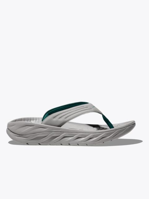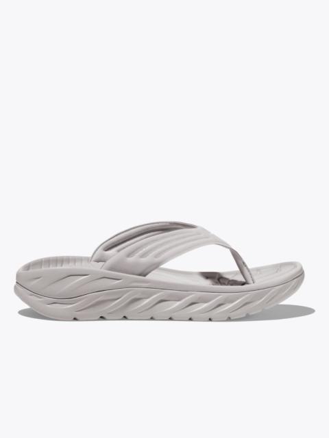 You just gave it all in that race and now your feet need some care, pronto. Enter the Ora Recovery Flip. We put a HOKA oversized midsole and Meta-Rocker geometry into a flip flop and improved the toe straps with a more anatomically friendly fit. It hugs the foot and provides sleek comfort and support. Your tired feet just got rescued. You’re welcome. Item No. 1099675 Best for: Recovery Comfort Features: Soft top layer EVA provides immediatestep-in comfort Jersey textile strap provides comfort andwicks moisture Updated women’s toe post for improved fit andcomfort Early stage Meta-Rocker offers a smooth ride Dual-layer construction incorporates a softtop layer and a resilient midsole/outsole fordurability and stability Strategic groove placement provides optimalcomfort and traction RN 88276 THE DETAILS Weight 5.80 oz Heel-To-Toe Drop 6.00 mm Stability The ORA Recovery Flip features a symmetrical bed of cushion without additional prescriptive technologies. Designed to provide the support you want and nothing you don't. Cushion The ORA Recovery Flip features a higher bed of soft cushion, designed to provide a forgiving impact and ride.