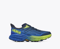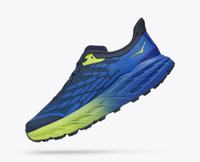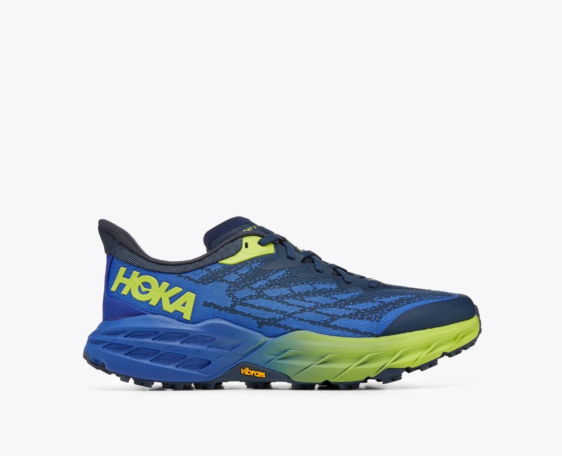 A workhorse designed for technical trails, the Speedgoat returns with less weight and more traction than ever before. A new shoe from outsole to laces, this trail beast is updated with Vibram® Megagrip with Traction Lug for enhanced grip on loose soil. Retaining the same stack height and rocker profile, the Speedgoat 5 employs a lighter midsole compound and heartier, double layer jacquard mesh to inspire confidence on any terrain. Item No. 1123157 Best for: Trail Running Hiking Features: Double layer jacquard engineered mesh Protective toe rand Late stage Meta-Rocker Vibram Megagrip with Traction Lug Vegan Lay-flat gusseted tongue Bolstered heel collar Molded EVA sockliner Compression-molded foam midsole 5mm lugs WHAT'S NEW Less weight and more traction. (A half ounce lighter, to be exact.) THE DETAILS Weight 10.30 oz Heel-To-Toe Drop 4.00 mm Volume 651.00 cm 3 Spring Measurement 35x21 mm Stability The Speedgoat 5 features a symmetrical bed of cushion without additional prescriptive technologies. Designed to provide the support you want and nothing you don't. Cushion The Speedgoat 5 is designed to provide protective cushion while maintaining a responsive toe-off for when you want to go faster.