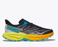 A workhorse designed for technical trails, the Speedgoat returns with less weight and more traction than ever before. A new shoe from outsole to laces, this trail beast is updated with Vibram® Megagrip with Traction Lug for enhanced grip on loose soil. Retaining the same stack height and rocker profile, the Speedgoat 5 employs a lighter midsole compound and heartier, double layer jacquard mesh to inspire confidence on any terrain. Item No. 1123157 Best for: Trail Running Hiking Features: Double layer jacquard engineered mesh Protective toe rand Late stage MetaRocker™ Vibram® Megagrip with Traction Lug Vegan Lay-flat gusseted tongue Bolstered heel collar Molded EVA sockliner Compression-molded EVA foam midsole 5mm lugs 34% recycled polyester upper mesh Laces with 70% recycled nylon and 30% recycled polyester 100% Recycled polyester sockliner top cloth RN 88276 WHAT'S NEW Less weight and more traction. (A half ounce lighter, to be exact.) THE DETAILS Weight 10.30 oz Heel-To-Toe Drop 4.00 mm Stability The Speedgoat 5 features a symmetrical bed of cushion without additional prescriptive technologies. Designed to provide the support you want and nothing you don't. Cushion The Speedgoat 5 is designed to provide protective cushion while maintaining a responsive toe-off for when you want to go faster.