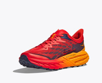 A workhorse designed for technical trails, the Speedgoat returns with less weight and more traction than ever before. A new shoe from outsole to laces, this trail beast is updated with Vibram® Megagrip with Traction Lug for enhanced grip on loose soil. Retaining the same stack height and rocker profile, the Speedgoat 5 employs a lighter midsole compound and heartier, double layer jacquard mesh to inspire confidence on any terrain. Item No. 1123157 Best for: Trail Running Hiking Features: Double layer jacquard engineered mesh Protective toe rand Late stage Meta-Rocker Vibram Megagrip with Traction Lug Vegan Lay-flat gusseted tongue Bolstered heel collar Molded EVA sockliner Compression-molded foam midsole 5mm lugs WHAT'S NEW Less weight and more traction. (A half ounce lighter, to be exact.) THE DETAILS Weight 10.30 oz Heel-To-Toe Drop 4.00 mm Volume 651.00 cm 3 Spring Measurement 35x21 mm Stability The Speedgoat 5 features a symmetrical bed of cushion without additional prescriptive technologies. Designed to provide the support you want and nothing you don't. Cushion The Speedgoat 5 is designed to provide protective cushion while maintaining a responsive toe-off for when you want to go faster.