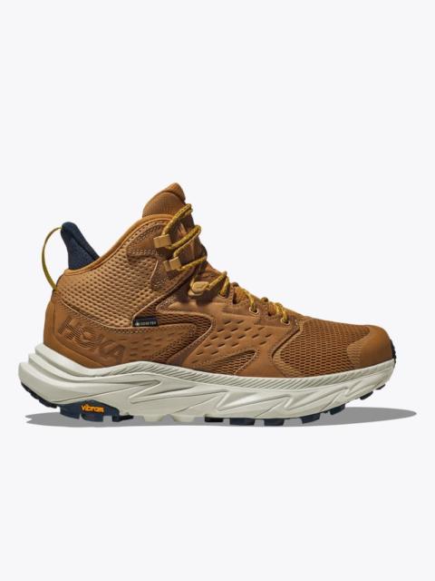 Scrutinized through the lens of sustainability, we've reimagined our beloved Anacapa Mid GTX with a renewed focus on earth-friendly materials. Updated with recycled yarn meshes, we've enlisted a 30% sugarcane EVA midsole and Vibram Megagrip outsole. Finished with metal speed hooks and a rubber toe cap, there's no telling where this hiker will take you Leather Working Group Gold-Rated waterproof nubuck leather. GORE-TEX bootie construction with 71% recycled polyester face fabric. Lightweight sugarcane EVA midsole. Abrasion resistant rubber toe cap. Vibram Megagrip outsole. Metal top hook. 100% Recycled polyester vamp and quarter mesh. Achilles heel comfort build. 50% Soybean-based sockliner. Swallow Tail heel. 100% Recycled polyester collar and tongue lining mesh. 88% Recycled polyester external collar and tongue mesh. 100% Recycled polyester laces (excluding aglet).
