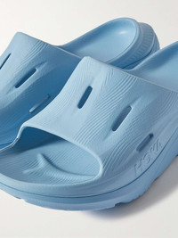 Hoka One One engineers its footwear for performance, even on days off. - These 'Ora Recovery 3' slides are made from lightweight rubber and have four airflow channels for breathability - Dual-density geometry and Early state Meta-Rockers provide a comfortable, supportive fit - Injection-molded EVA soles increase durability - Podiatric Medical Association approved Size & Fit - US 6.5 = UK 6/ EU 39 - US 7 = UK 6.5/ EU 40 - US 7.5 = UK 7/ EU 40.5 - US 8 = UK 7.5/ EU 41 - US 8.5 = UK 8/ EU 42 - US 9 = UK 8.5/ EU 42.5 - US 9.5 = UK 9/ EU 43 - US 10 = UK 9.5/ EU 44 - US 10.5 = UK 10/ EU 44.5 - US 11 = UK 10.5/ EU 45 - US 11.5 = UK 11/ EU 46 - US 12 = UK 11.5/ EU 46.5 - US 12.5 = UK 12/ EU 47 - US 13 = UK 12.5/ EU 48 - Packaging reflects both men’s and women’s sizing Details & Care - Light-blue rubber - Hoka One One follows its own size guide, therefore the size stated on the box will differ from the one provided in our size chart. To receive your correct fit, please refer to Size & Fit notes