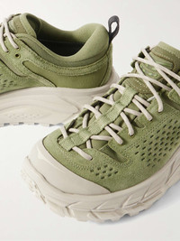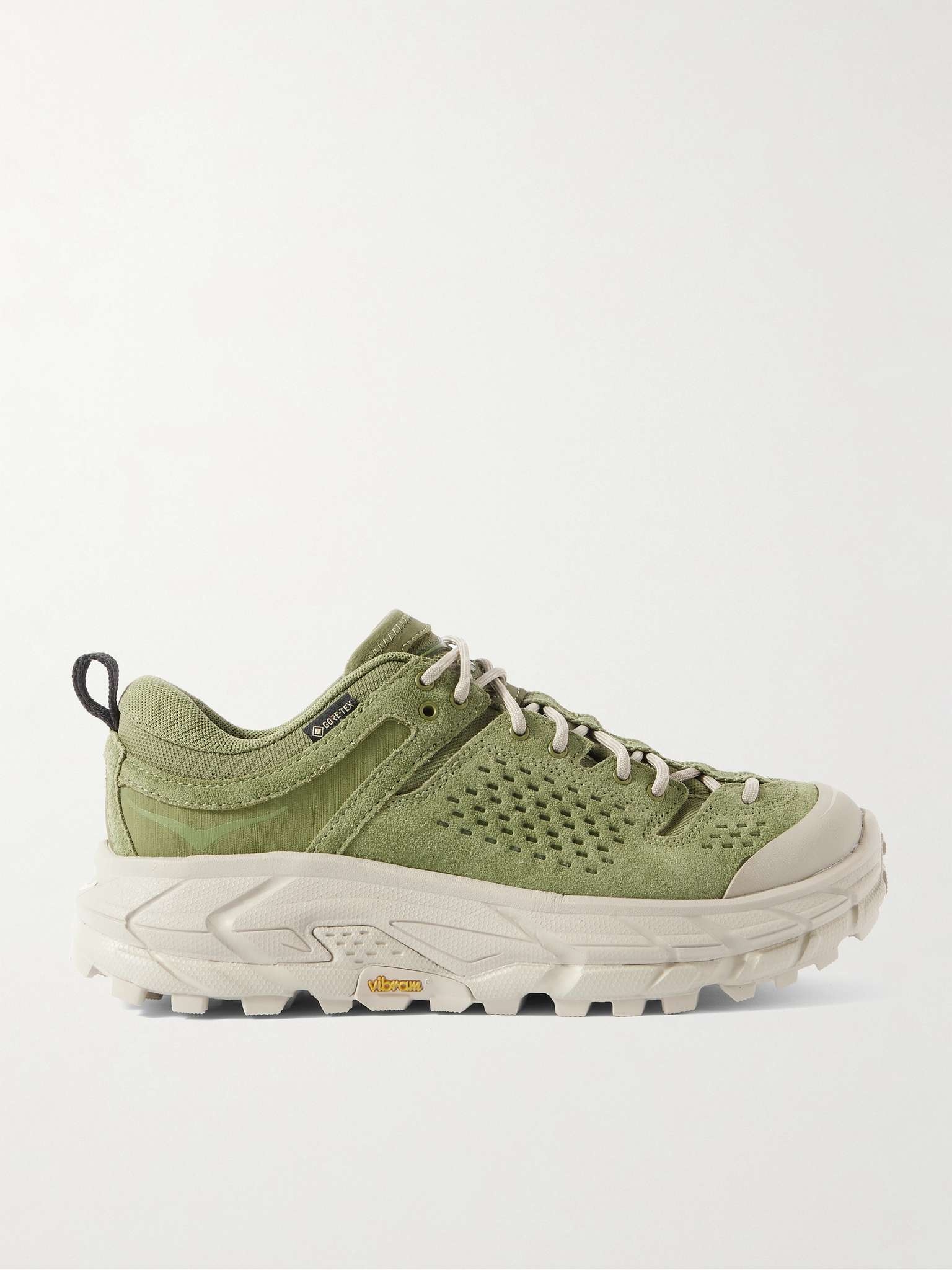 Hoka designs sneakers for city streets and cross-country trails alike. - This 'Tor Ultra Lo' style is versatile enough to wear in urban and rural environments - Rough suede overlays that'll camouflage scuffs and scratches - Fitted with GORE-TEX booties to protect your feet from the rain - Deep-lugged, Vibram® Megagrip outsole for performance on the uneven terrain Size & Fit - US 6.5 = UK 6/ EU 39 - US 7 = UK 6.5/ EU 40 - US 7.5 = UK 7/ EU 40.5 - US 8 = UK 7.5/ EU 41 - US 8.5 = UK 8/ EU 42 - US 9 = UK 8.5/ EU 42.5 - US 9.5 = UK 9/ EU 43 - US 10 = UK 9.5/ EU 44 - US 10.5 = UK 10/ EU 44.5 - US 11 = UK 10.5/ EU 45 - US 11.5 = UK 11/ EU 46 - US 12 = UK 11.5/ EU 46.5 - US 12.5 = UK 12/ EU 47 - US 13 = UK 12.5/ EU 48 Details & Care - Green suede (Calf) - Lace-up - Designer colour: Forest Floor/ Farro - Style number: 1153137FFSTF