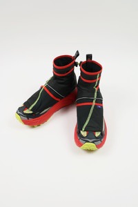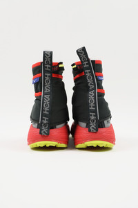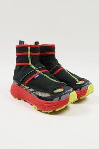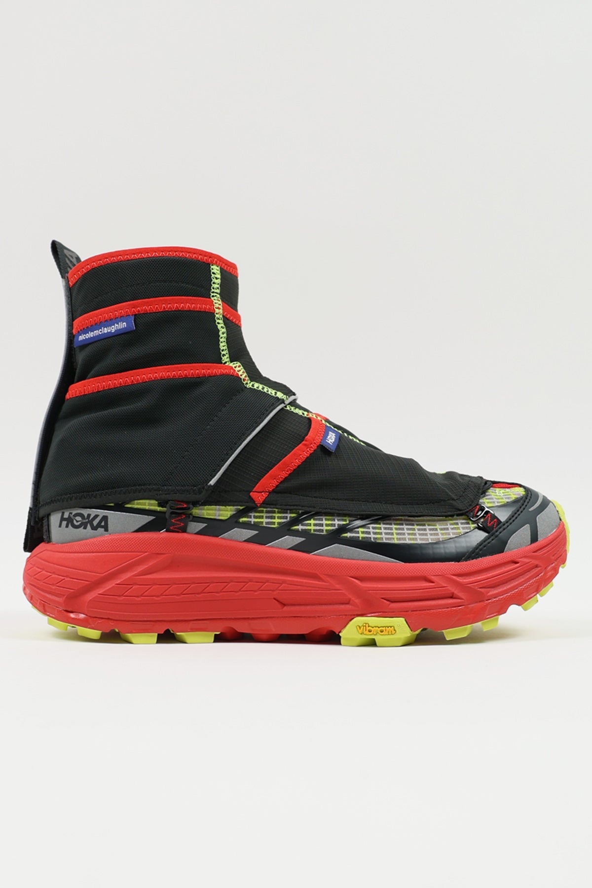 Making a name for herself by challenging perceptions about waste, Nicole McLaughlin is known for her out sustainable, tongue-in-cheek designs. Hoka partnered with the Boulder-based designer to overhaul the Mafate Three2, topping their cushy bottom unit with a full-coverage, four-in-one gaiter system. Finished with five utility pockets and co-branded labels, this street-ready spinoff features a cinched entry and Velcro heel spike. FEATURES: - Woven ETPU Base Material - Co-branded woven labels on gaiter and midsole - Dirt and water resistant 4-in-1 gaiter system - 5 pockets per shoe - Cinched opening at entry - Velcro heel spike and gaiter attachment detail - Hook and loop attachment system - Custom Crag box