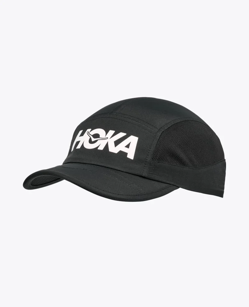 Listening to our athletes and fans, we honed the design for even more comfort and breathability through the miles. New mesh side panels increase ventilation, and the softer brim is more shapable. We also swapped in a wide webbing-and-buckle closure for a comfier fit and topped it off with reflective ticking on the webbing for visibility and an embroidered HOKA bird logo. 100% polyester. Breathable mesh side panels. Lightweight. Quick-drying fabric. Soft, shapable brim. Customizable webbing and buckle closure. Reflective ticking on webbing.