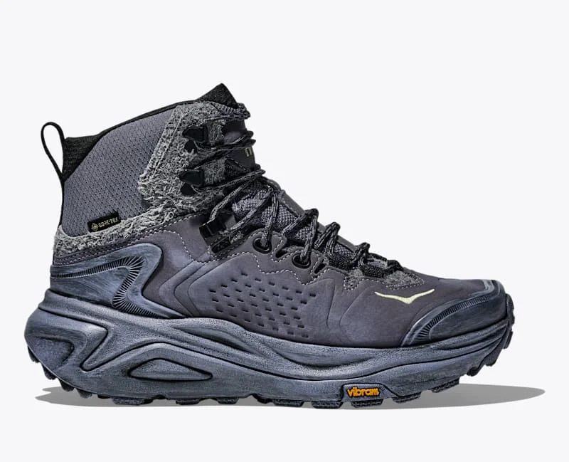 The trailblazing Kaha 3 GTX gets a vintage treatment for this season's Elite Terrain System Collection. Inspired by the burnished look boots earn with a life of adventure, we mixed distressed aesthetics with our latest HOKA trail technology. Two-tone hairy suede and nubuck upper detail. Ripstop collar. GORE-TEX waterproof technology. Distressed midsole paint treatment. Kaha 3 GTX midsole. Vibram Megagrip Outsole.