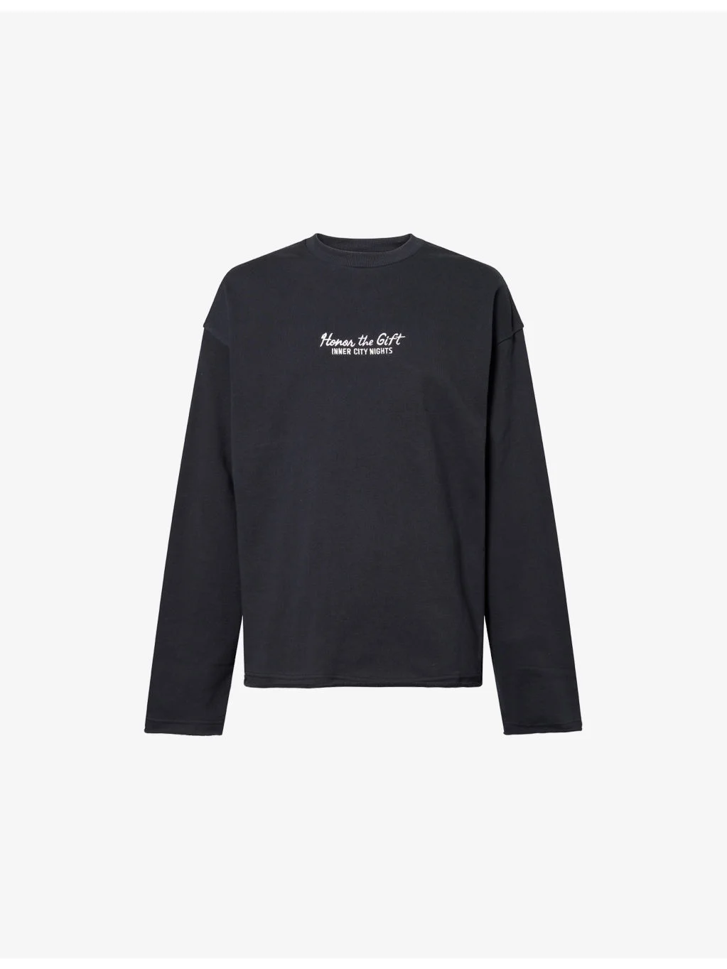 PRODUCT DETAILS - Honor The Gift cotton sweatshirt - 100% cotton - Relaxed fit, ribbed crew neck, long sleeves, embroidered text at front, graphic print design at back, unfinished hem - Machine wash cold - Model is 6ft 2in/1.88m and wears a size medium - Lightweight, non-stretch Ref: R04538662
