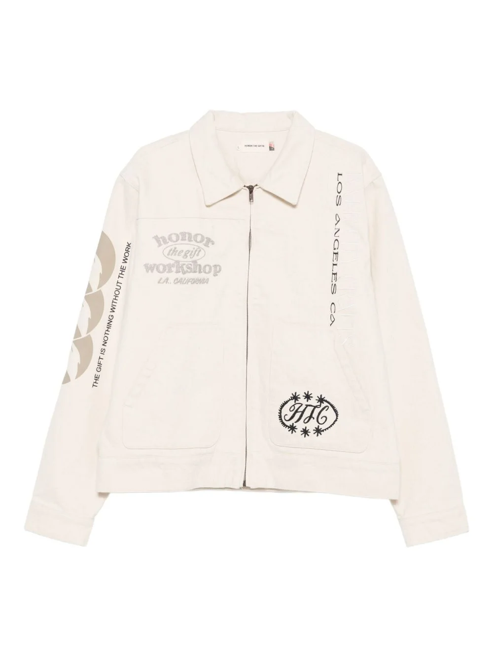zip-up graphic-print jacket Highlights - Beige - Front zip fastening - Chest pockets - Embroidered motif - Graphic print - Point collar Imported Composition Cotton 100% SIZE & FIT Model measurements Height 6 ft 2 in(1.87 m) Bust/Chest 36.41 in(92.5 cm) Hips 37 in(94 cm) Waist 29.52 in(75 cm) Washing instructions Read Manufacturer Guidelines