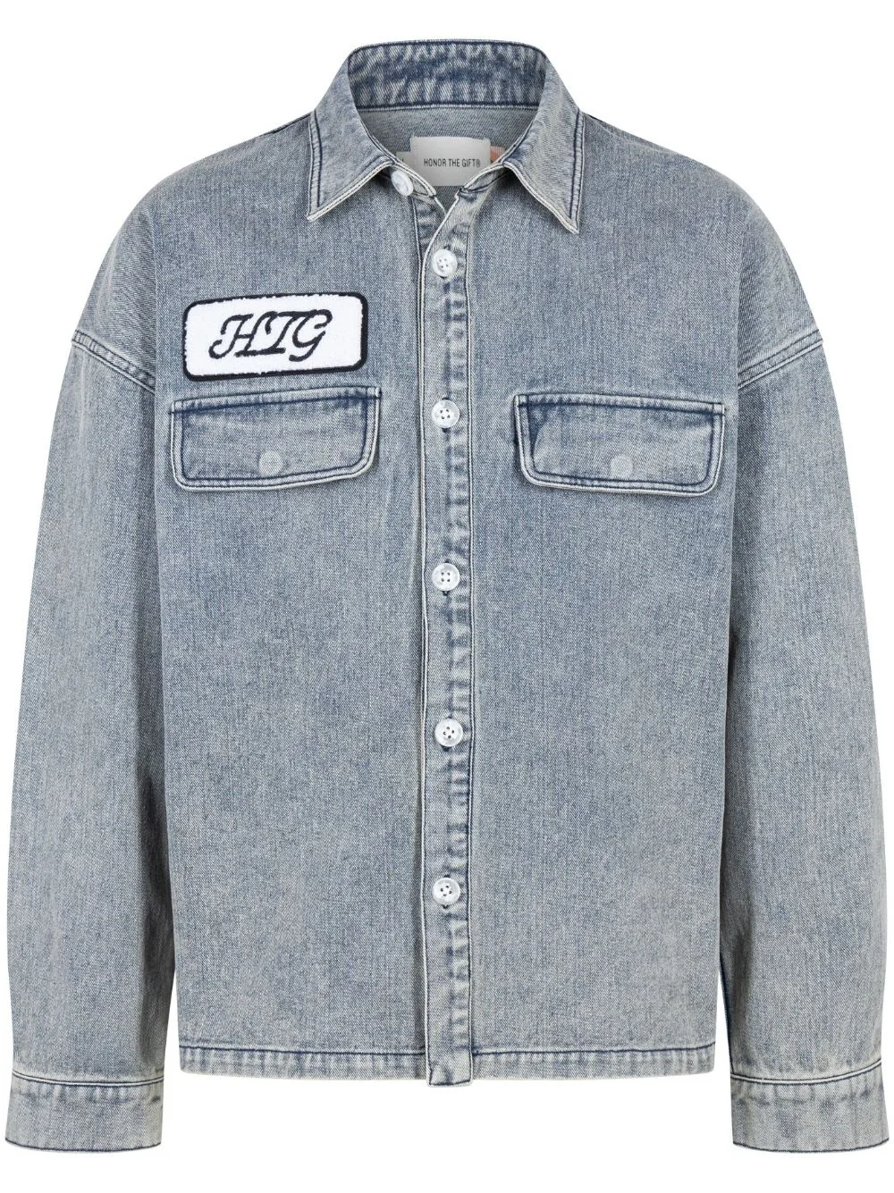 HTG® Work denim shirt Taking cues from classic American workwear, this indigo-blue HTG® Work shirt by Honor The Gift is made from rigid, faded-effect denim to a simple long-sleeve silhouette accented with a logo applique at the chest and 'Honor The Gift Inner City' embroidery to the rear. Highlights - Indigo blue - Cotton - Denim - Applique logo - Embroidered logo to the rear - Classic collar - Front button placket - Long sleeves - Buttoned cuffs - Two chest flap pockets - Straight hem Imported Composition Cotton 100% SIZE & FIT Measurement CHEST 47 in(119.4 cm) SLEEVE LENGTH 22 in(55.9 cm) LENGTH 27 in(68.6 cm) WAIST 45 in(114.3 cm) Washing instructions Read Manufacturer Guidelines
