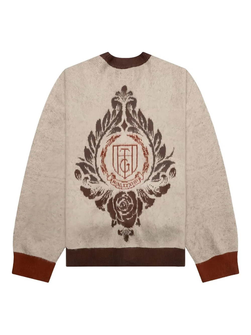 intarsia-knit cardigan Highlights - Beige - Crest motif - Button front - Patch pockets - Ribbed hem - V-neck Imported Composition Wool 100% Washing instructions Read Manufacturer Guidelines