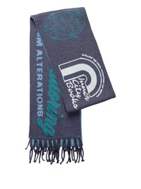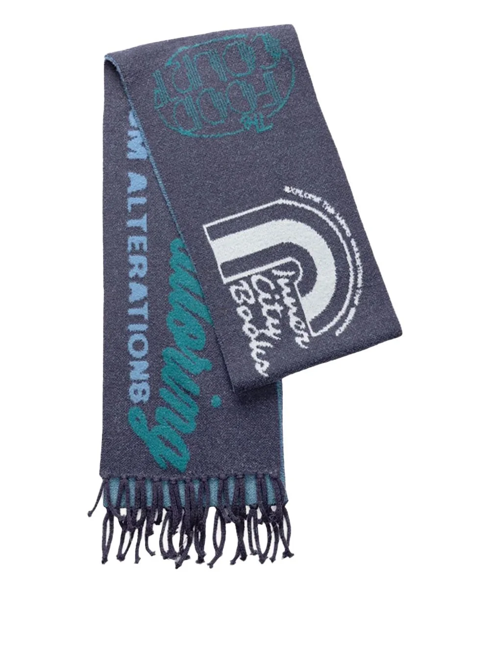 jacquard inner city mall scarf Highlights - Blue - Jacquard pattern - Inner city mall graphic - Fringed edges - Wool - Textile design Imported Composition Fabric 100% Washing instructions Read Manufacturer Guidelines