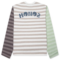 The Honor The Gift Multi Stripe Crewneck features a knitted construction with a distinct color-blocked design—each sleeve showcasing its own striped palette. An embroidered “HONOR” patch accents the back, enhanced with a jacquard fabric and topographic wave texture for added depth. Rooted in Russell Westbrook’s mosaic of experiences growing up in Los Angeles, the piece blends everyday wearability with cultural storytelling. - Knitted upper - Distinct color on sleeves - Branded patch on the back - Jacquard fabric and topographic wave texture detailing - Style no: HTG250350-BONEHTG250350 BONE