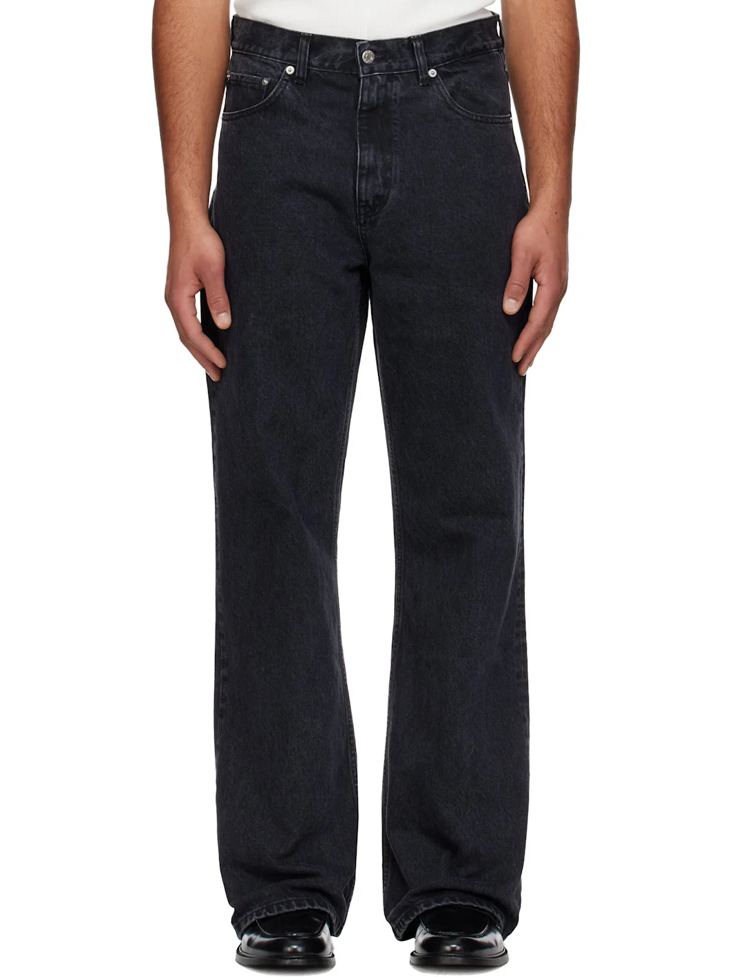 Overdyed non-stretch organic cotton-blend denim jeans. · Fading throughout · Slim-fit, flared-leg · High-rise · Belt loops · Five-pocket styling · Button fly · Logo patch at back waistband Supplier color: Washed black 50% regenerative cotton, 30% organic cotton, 20% recycled cotton. Made in Portugal 252995M186003